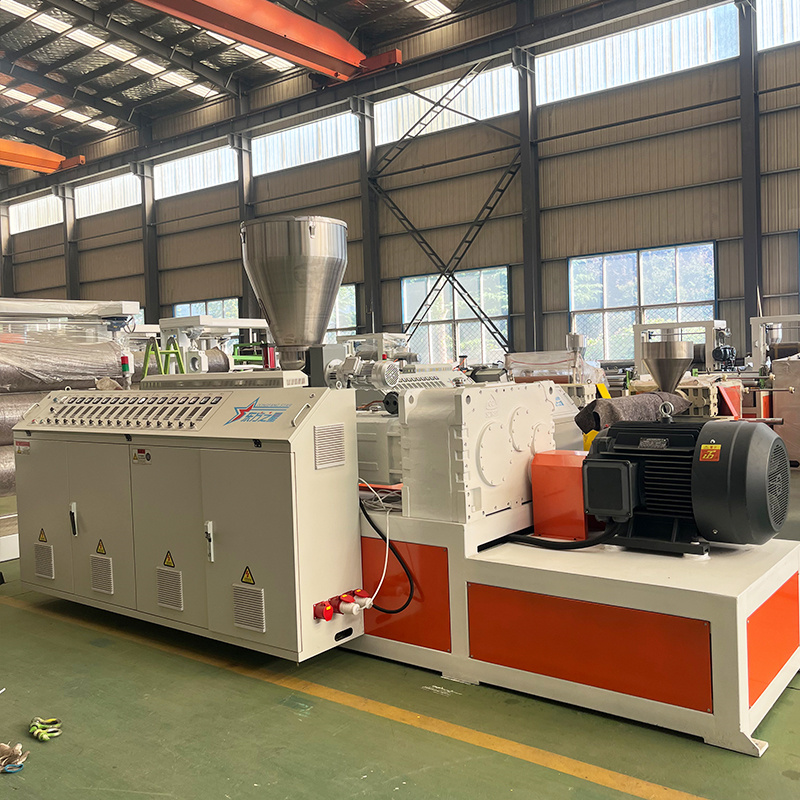 Конические двухшнековые экструдеры, оснащенные различными характеристиками формами и вспомогательным оборудованием производстваЦиндаоская компания Eaststar Plastic Machinery Co., Ltd.,может напрямую перерабатывать порошок ПВХ в пластиковые изделия, такие как трубы, листы и профили.