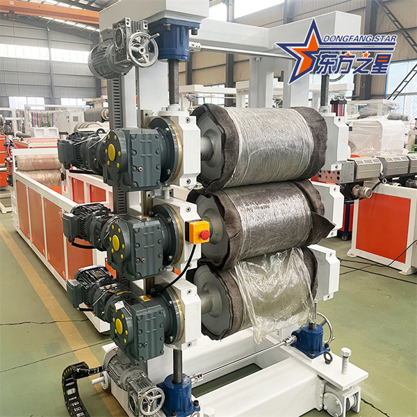 Формование и охлаждение: Трехвалковый каландр выполняет формовку по толщине и обработку поверхности листов. Система охлаждения быстро охлаждает листы до температуры ниже 60 ℃, чтобы предотвратить деформацию.