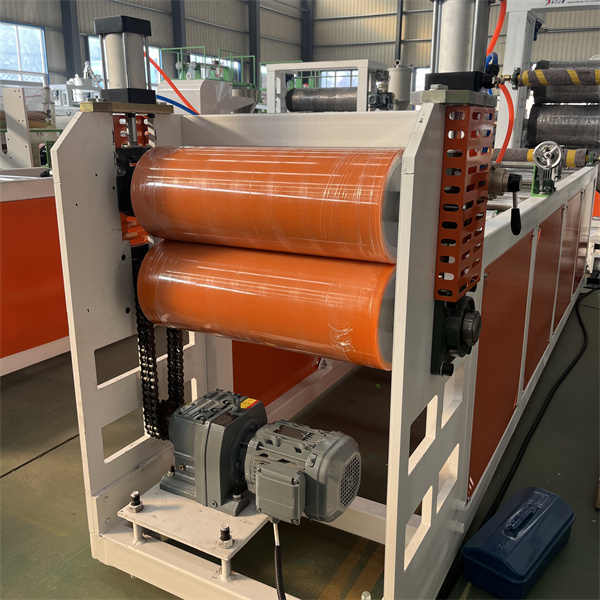 В форме для листов ТПУ используется хромированная Т-образная головка с зеркальной полировкой. Конструкция канала потока симметричная и гладкая, без мертвых зон, что обеспечивает равномерное распределение расплава. Зазор кромки матрицы можно точно настроить (с точностью до 0,01 мм), что позволяет использовать листы толщиной от 0,1 до 5 мм. Экструдер для листов ТПУ оснащен трехвалковой системой охлаждения и формования. Поверхность валков зеркально отполирована, а температура охлаждающей воды контролируется системой постоянной температуры. Это позволяет быстро охладить и придать форму, обеспечивая при этом гладкую поверхность без царапин. Плоскостность и допуск толщины листа (в пределах ±0,03 мм) контролируются давлением между роликами.